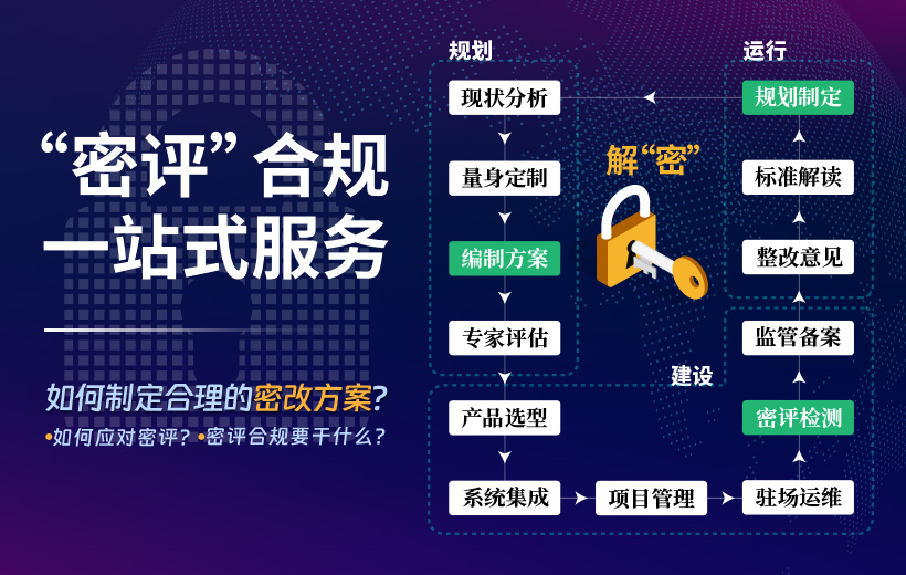 為客戶提供個性化、專業(yè)性的,符合相關規(guī)定要求的,全流程——密碼技術解決方案。